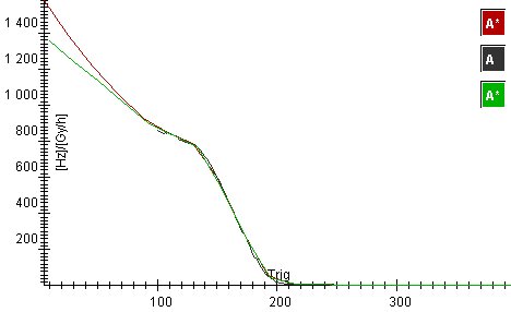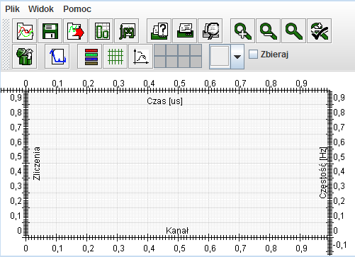 - czas względny - moment startu serii jest uznawany za czas 0. Wszystkie kolejno startowane serie będą rozpoczynać się na wykresie w tym samym punkcie. Opcja ta jest użyteczna przy porównywaniu zmian aktywności próbek w czasie - wykresy kolejnych próbek nałożą się na siebie w osi czasu. Jest to domyślny tryb.