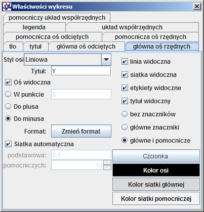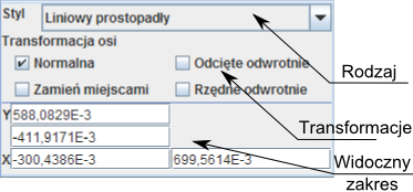 Transformacja układu współrzędnych nie musi być taka sama jak styl osi - można używać osi logarytmicznych z liniowym układem współrzędnych i odwrotnie!