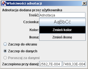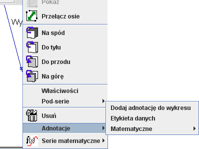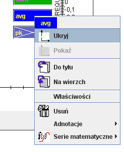 Panel właściwości serii pojawia się po wybraniu właściwości w menu kontekstowym po kliknięciu prawym przyciskiem na wykres serii, odpowiadający jej element legendy lub wybranie serii z listy serii.