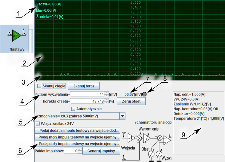 Zakładka "Nastawy analogowe",Zakładka "Nastawy analogowe"
