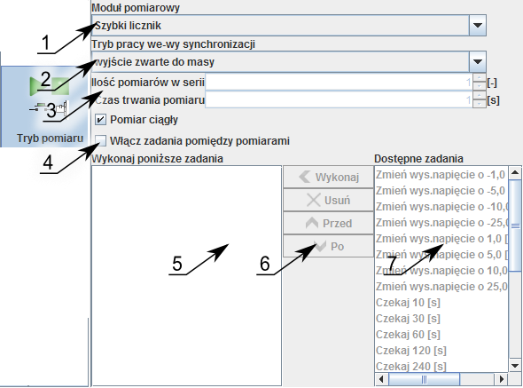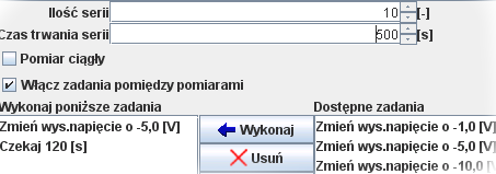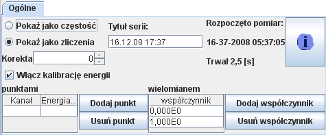 Każda zakładka daje możliwość zmian nastaw serii i może mieć wygląd zależny od serii pomiarowej której dotyczy. Aby pozyskać bardziej szczegółowe informacje naciśnij F1 będąc w wybranej zakładce lub wybierz jeden z poniższych tematów: