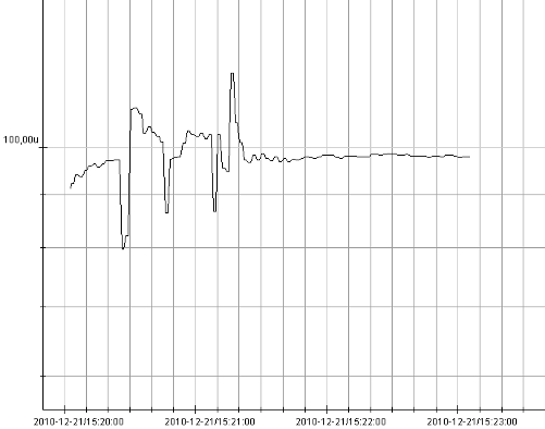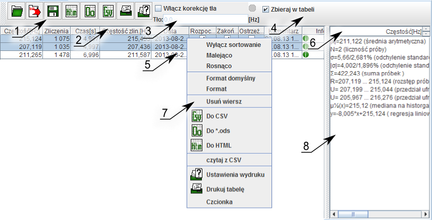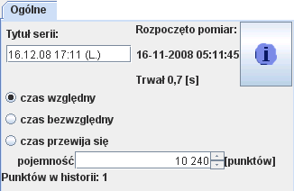 - czas bezwzględny - wykorzystana jest oś daty - moment startu jest przenoszony w pozycję odpowiadającą dacie rozpoczęcia. Dla wyjaśnienia - zero odpowiada dacie 01.01.1970 00:00:00 GMT. Ten tryb przedstawiania wyników jest wygodny gdy chce się pokazać zmienność w czasie w serii pomiarów - kolejne pomiary zostaną ułożone na osi czasu tak, jak były wykonywane;