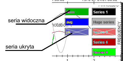W panelu tym można dokonać nastaw serii reprezentującej historię zmian w czasie, na przykład historię zmian częstości.