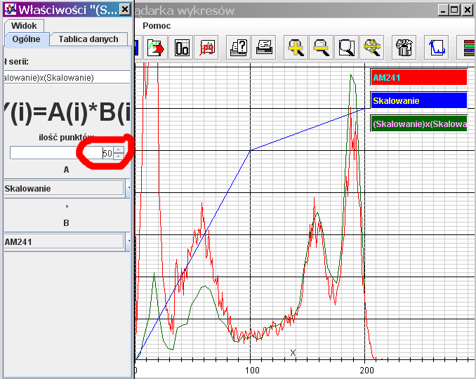 i klikamy "Użyj wyrażenia". Efektem będzie seria, której każdy punkt jest sumą punktu serii A (wybranej z listy w polu właściwości serii) i serii B.